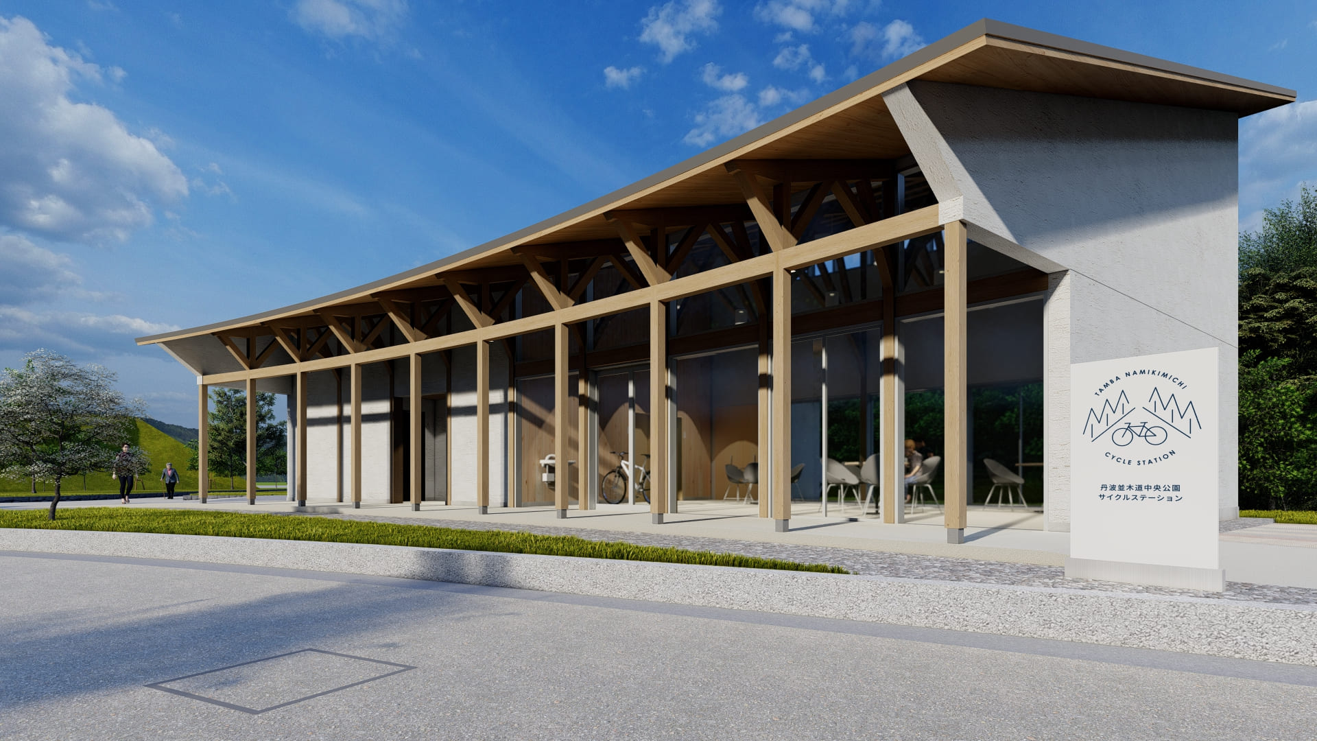 この『並木』、『並木道』という特質を活かし、計画の中に積極的に取り入れることで、公園全体と新たに誕生するサイクルステーションのブランディングを意識した計画としました。